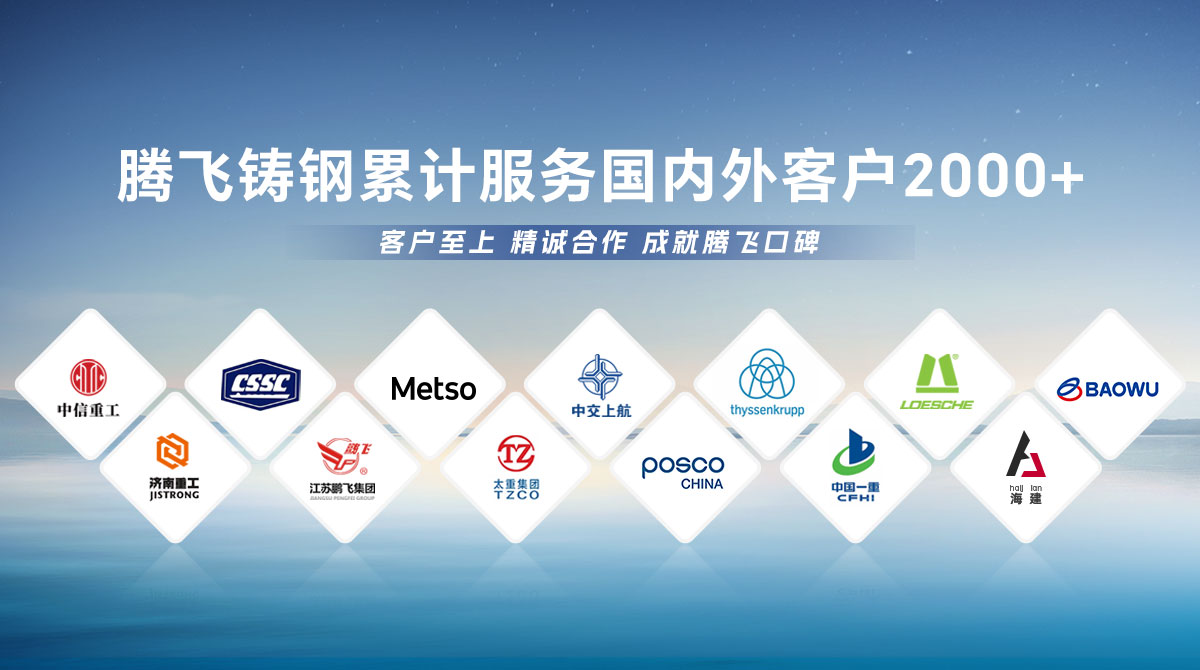 騰飛鑄鋼成立于2006年,位于全國(guó)鑄造基地河南省新鄉(xiāng)市,擁有員工300余人,是一家從事150噸以下碳鋼、低合金鋼、不銹鋼鑄鋼件研發(fā)、制造、服務(wù)為一體的國(guó)家高新技術(shù)企業(yè)?! 」就ㄟ^(guò)了ISO9001國(guó)際質(zhì)量管理體系認(rèn)證,擁有2項(xiàng)發(fā)明專 利,2項(xiàng)河南省科技成果、25項(xiàng)實(shí)用新型技術(shù),通過(guò)了“環(huán)???jī)效評(píng)級(jí)B級(jí)企業(yè)”驗(yàn)收,先后榮獲“河南省鑄造行業(yè)綠色發(fā)展企業(yè)”、 “河南省科技型中小企業(yè)”、“河南省專精特新中小企業(yè)”等榮譽(yù)稱號(hào)?! 」緭碛?臺(tái)25噸電爐,4臺(tái)大型天燃?xì)鉄崽幚頎t、10米回旋自動(dòng)拋丸機(jī)一臺(tái), φ8m數(shù)控立車、φ10m數(shù)控滾齒機(jī)等各類高精裝備100余臺(tái)套,年產(chǎn)能3萬(wàn)余噸,能為客戶提供從產(chǎn)品設(shè)計(jì)、木模加工、大型鑄造、大型加工一站式服務(wù),產(chǎn)品廣泛應(yīng)用于建材、冶金、鍛壓、冶金、水工、路橋、化工等多個(gè)重型行業(yè)?! ¢L(zhǎng)期服務(wù)于中信重工、中船重工、美卓、上海中交、萊歇、寶武、濟(jì)南重工等全球知名企業(yè),在行業(yè)內(nèi)擁有較高的市場(chǎng)知名度和美譽(yù)度。
